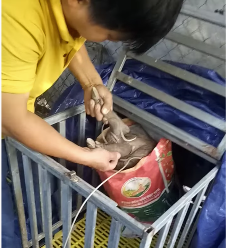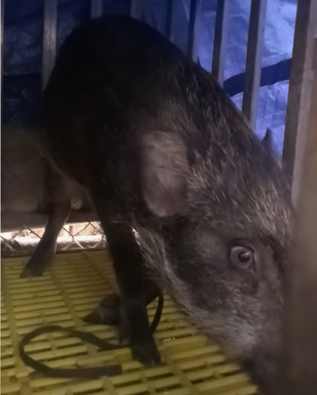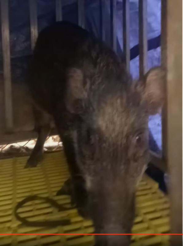 Heo rừng rặc Vifoods bắt sống những con heo rặc trên núi dùng bẫy để bây chân nên chúng thường bị thương ở chân, Nếu nhẹ thì chúng có thể phục hồi cò nặng sẽ mất 1 chân tùy con.\